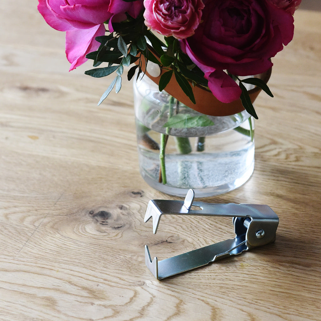 お花のプロも愛用するバラのとげ取りです。バラの花のトゲの取りたい茎部分を挟んで手前に 引っ張ることで、簡単にトゲをとることができます。手を傷めず、短い時間でバラのトゲを処理できるので持っていると便利です。